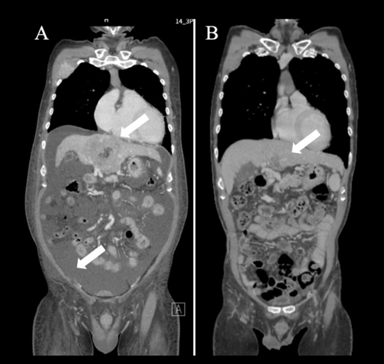 该患者接受DC疫苗+NK细胞+纳武利尤单抗的联合方案后,病情显著改善:肝脏储备功能恢复,肿瘤体积大幅缩小,腹水减少。