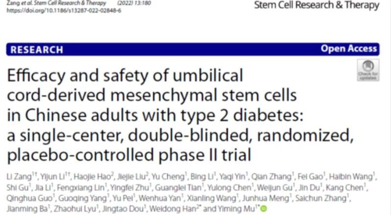2022 年,解放军总医院母义明教授、韩卫东教授团队在《Stem Cells Research & Therapy》发表 II 期临床结果,研究纳入 91 例 2 型糖尿病患者(最终 73 例完成 48 周随访):