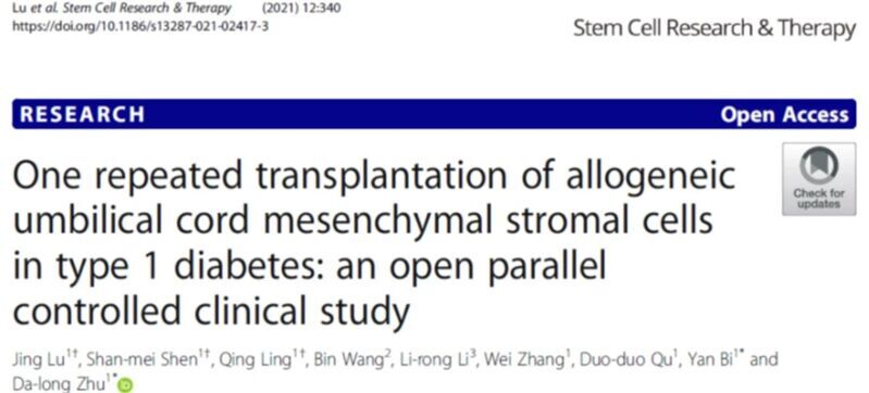 2021 年,南京鼓楼医院朱大龙教授团队在《Stem Cell Research & Therapy》发表研究,针对 1 型糖尿病(T1DM)患者展开干细胞干预探索: